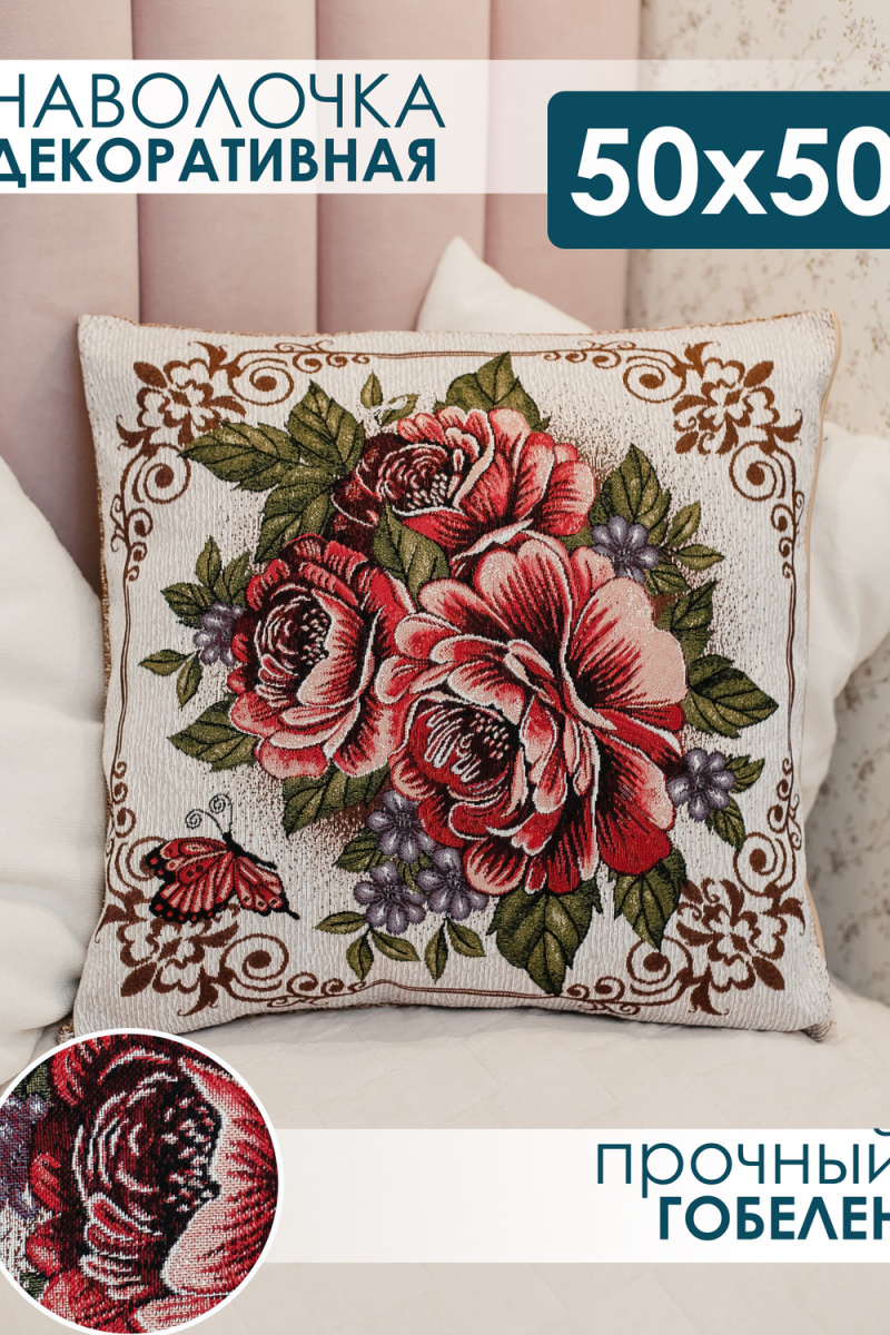 Наволочка декоративная 50х50 Три пиона